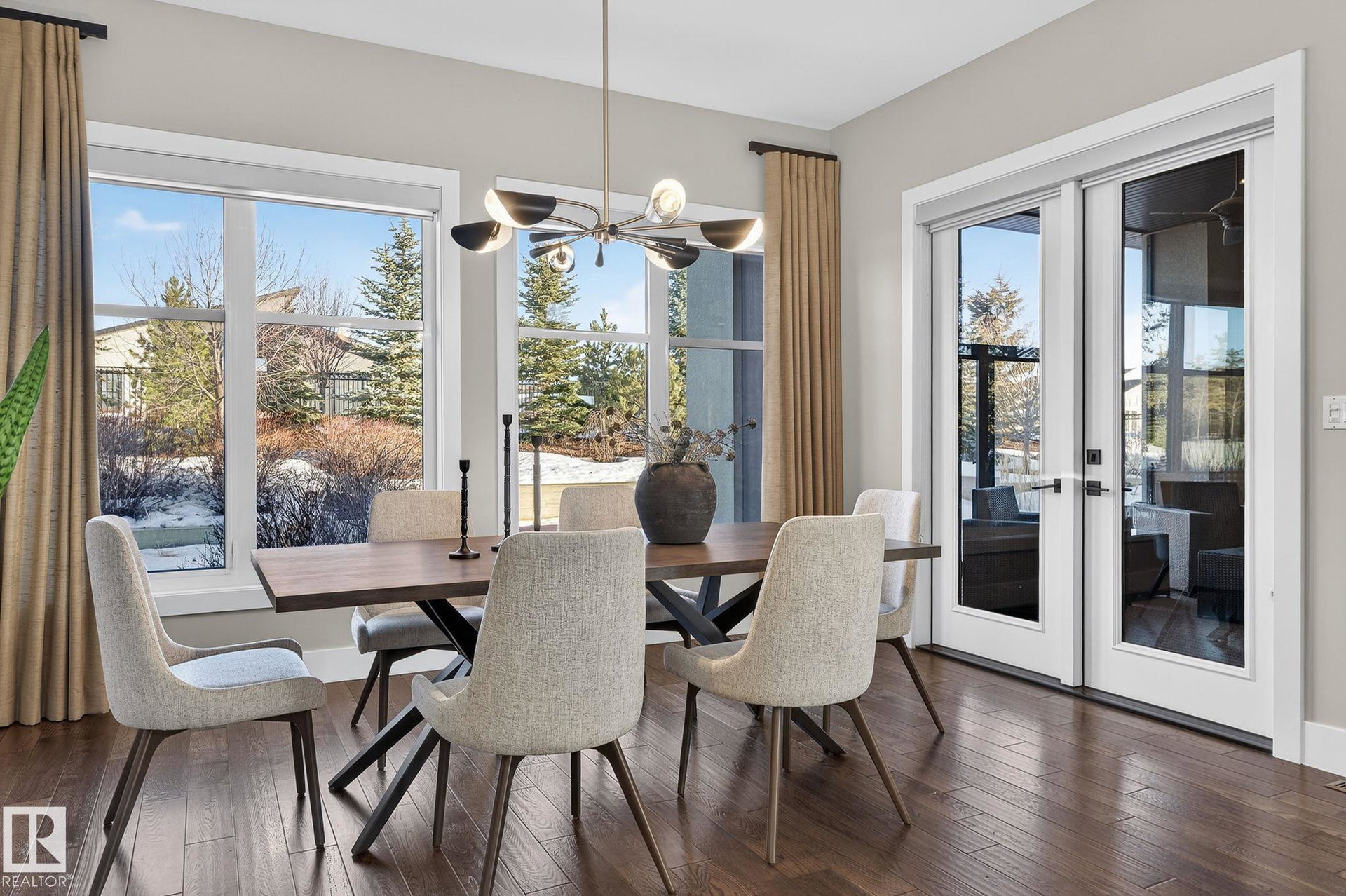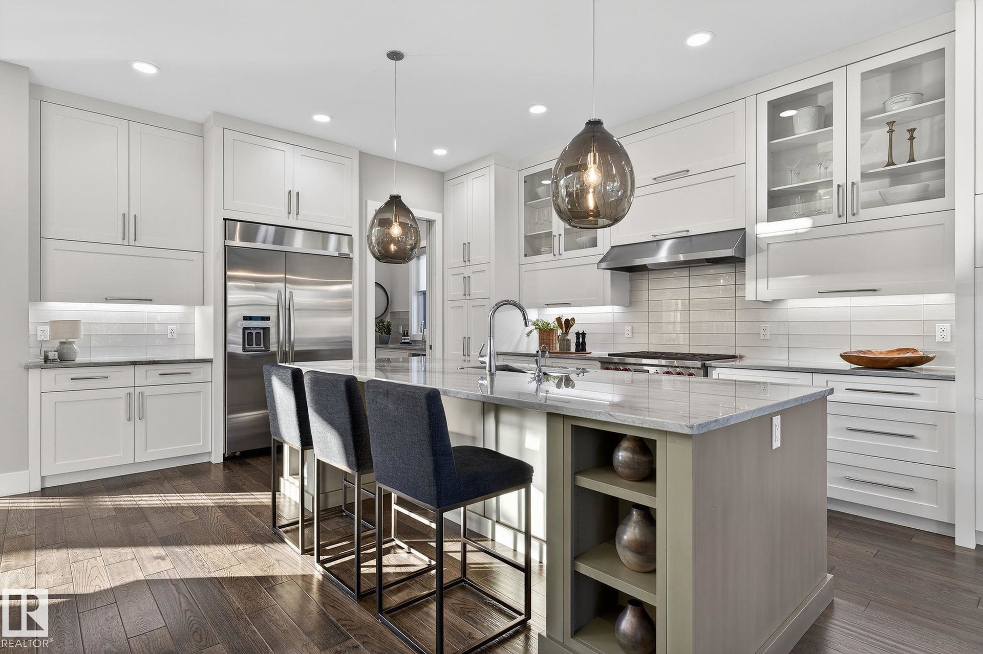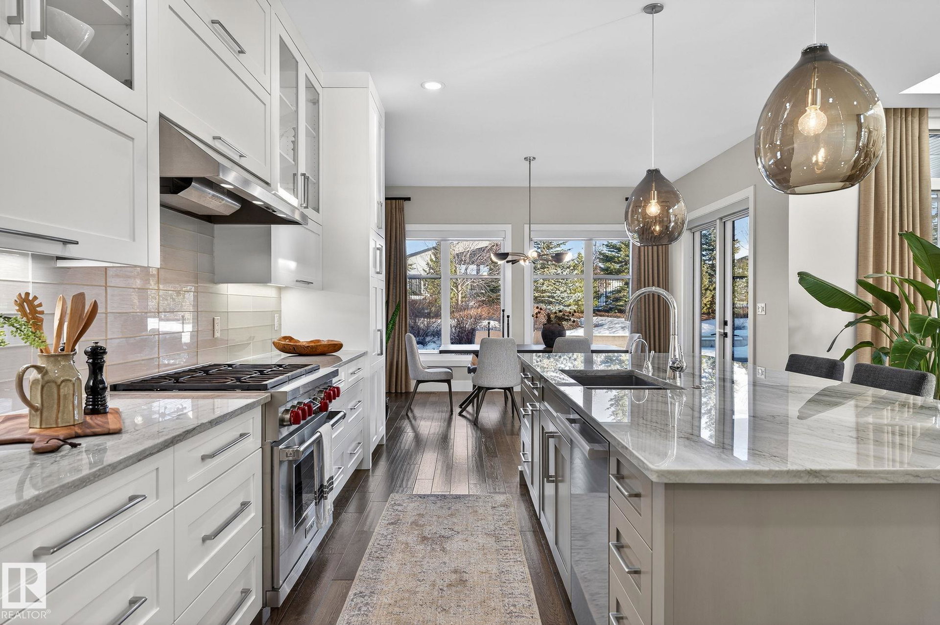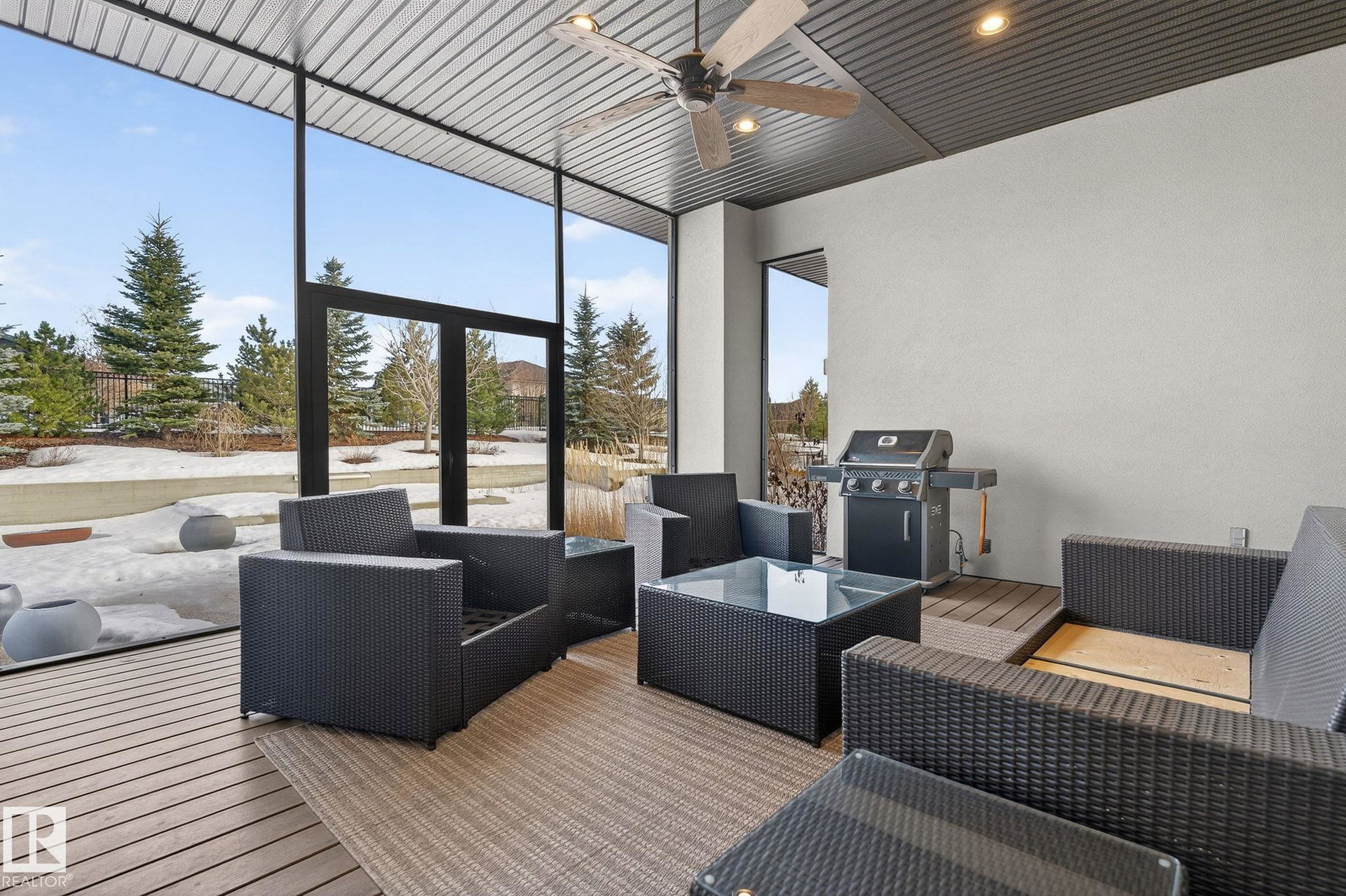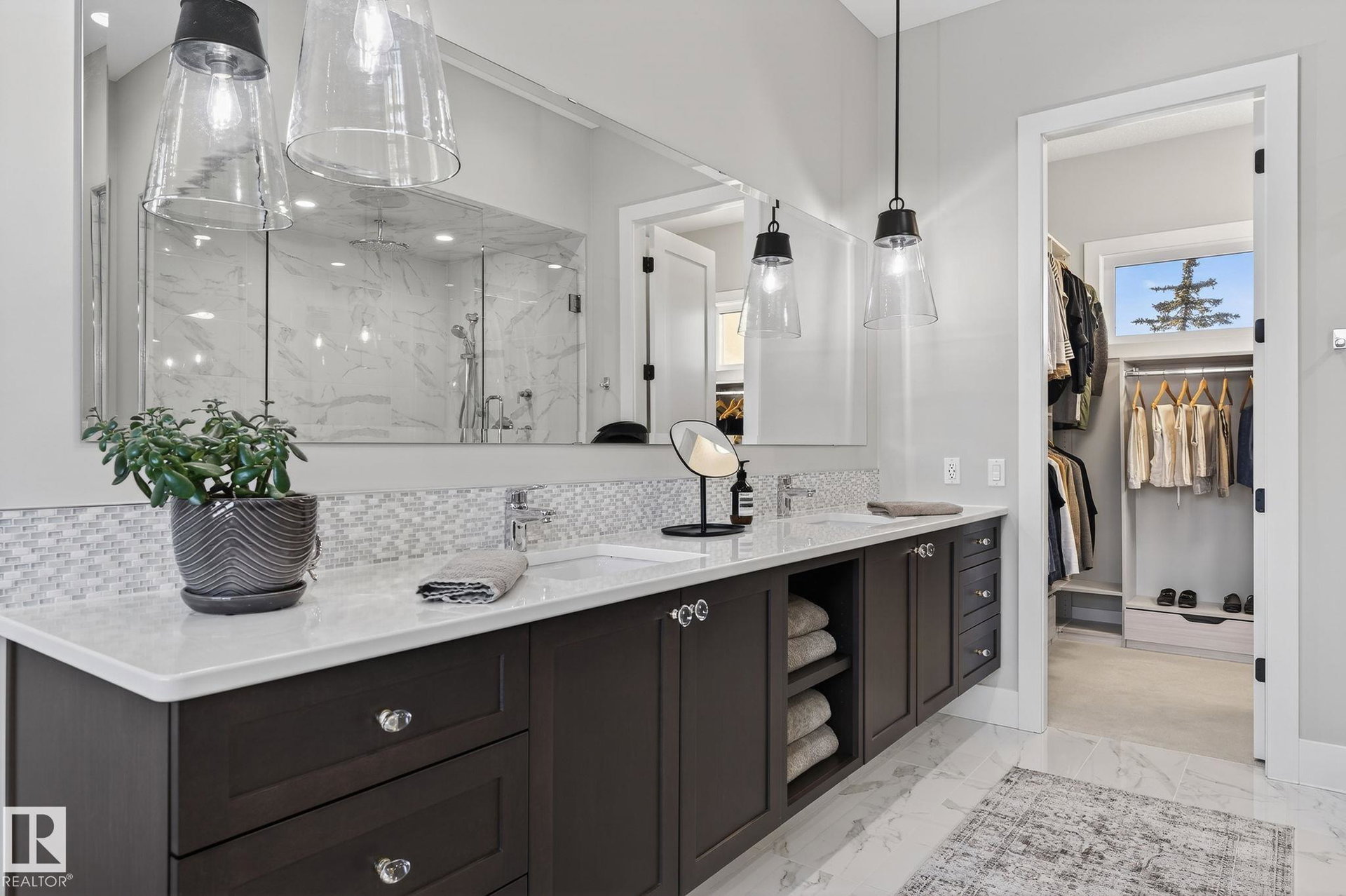 Nestled on a private, sprawling property in Rural Sturgeon County, this luxurious executive bungalow offers over 5,400 sq ft of thoughtfully designed living space, combining elegance with functionality. The open-concept main floor features soaring ceilings, a sun-filled great room with floor-to-ceiling windows, and a striking fireplace. The chef-inspired kitchen boasts quartz counters, professional-grade appliances, custom cabinetry, and a walk-through pantry. The primary retreat includes a spa-like ensuite with a soaker tub, dual vanities, a walk-in shower, and a custom closet. A second bedroom with ensuite, mudroom, and laundry complete the main level. The lower level features two bedrooms, a Jack-and-Jill bath, expansive family room with wet bar, gym, and storage. Outdoors, landscaped grounds, tiered patios, and a triple garage with workshop offer the perfect blend of luxury, privacy, and country living minutes from St. Albert and Edmonton.